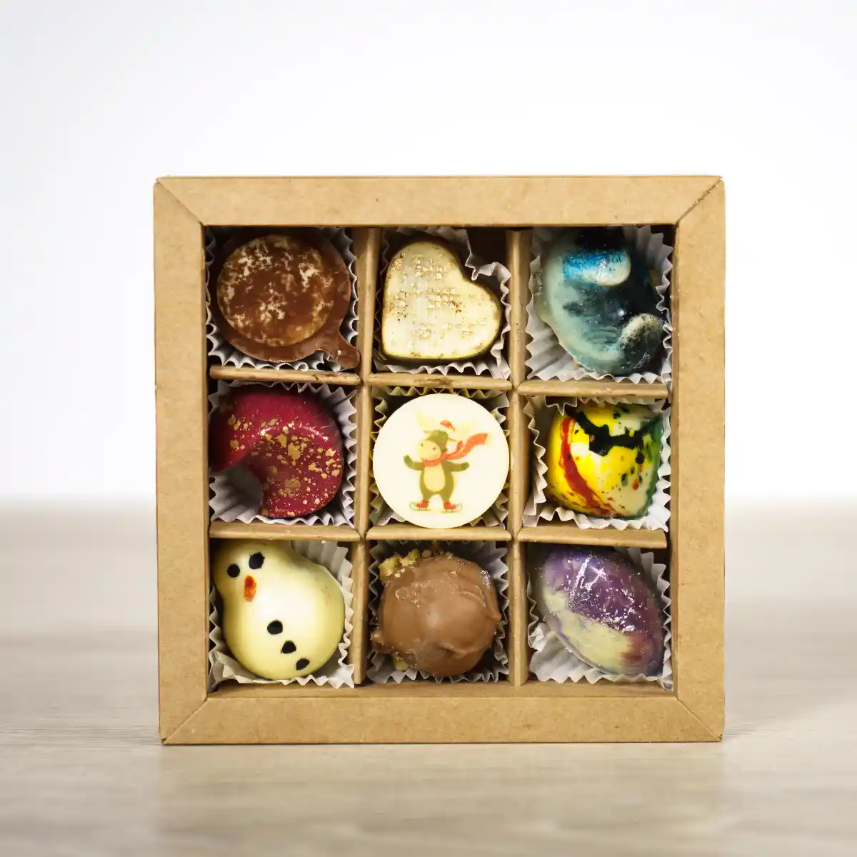 9 kleine Kunstwerke aus Schokolade – handgefertigt mit Liebe, Leidenschaft und feinsten Zutaten.